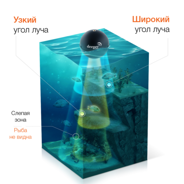 Вы прикрепляете Deeper к леске/шнуру и забрасываете его в воду. После попадания в воду эхолот Deeper сам включается и с помощью Bluetooth сразу же начинает отправлять данные о глубине, температуре и наличии рыбы. Забросить эхолот можно как с берега/моста, так и с лодки.