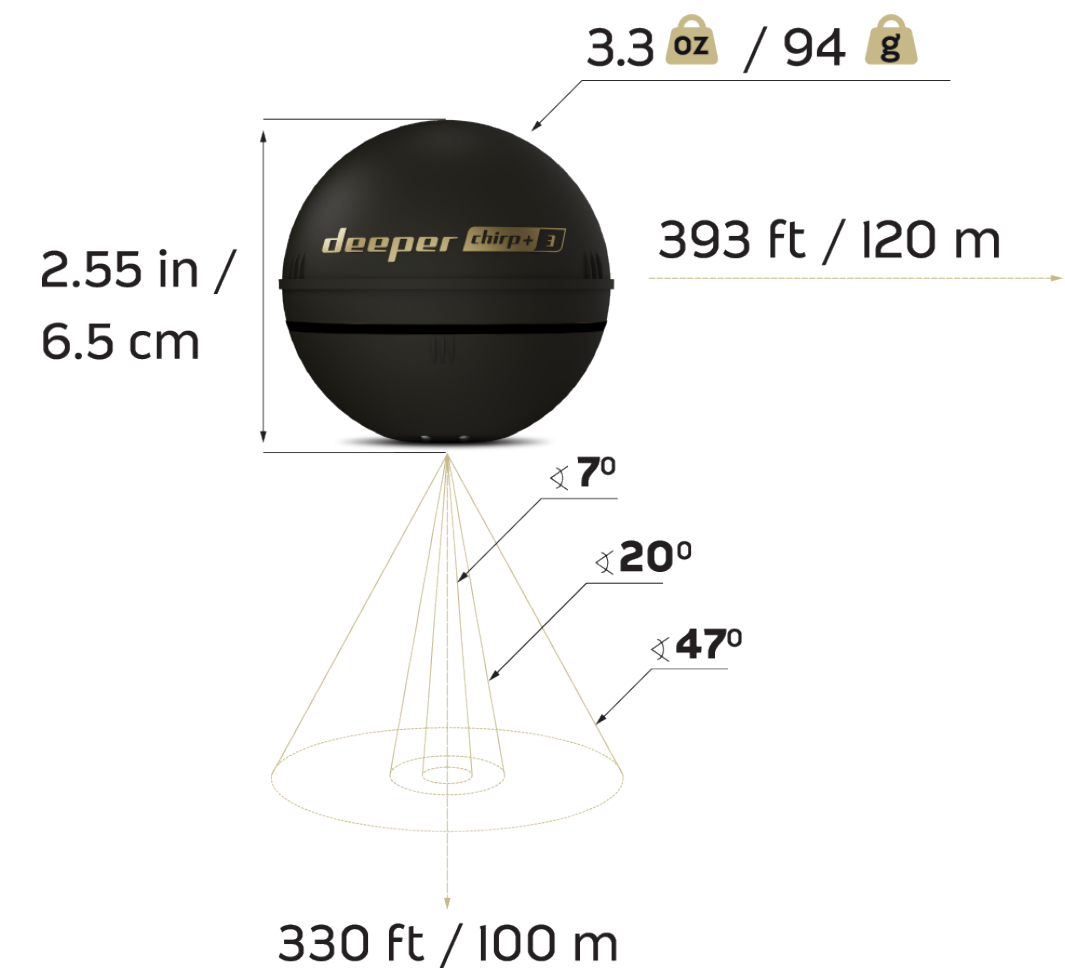 Широкий промінь (47°) – охоплює широку область, що ідеально підходить для ідентифікації будь-якої активності риби.