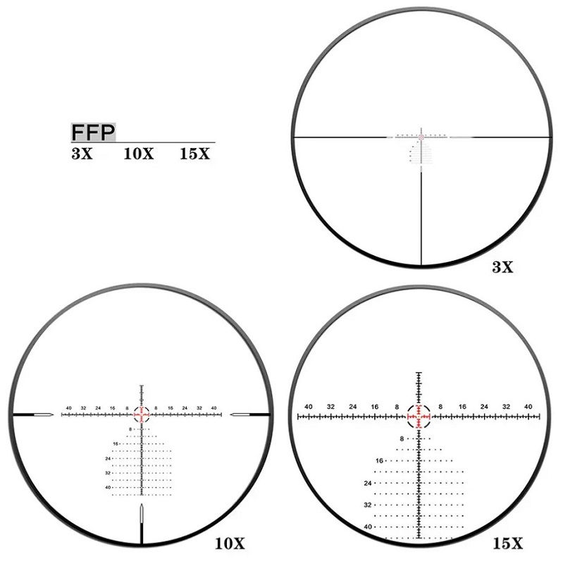 ED-LHT 3-15x50 SFIR також може змінювати збільшення в діапазоні від 3 до 15 разів, що дозволяє стрілку легко адаптувати ціну під різні умови стрільби. Це особливо корисно при перемиканні між стріляниною на ближніх та далеких дистанціях. Плавне регулювання збільшення дозволяє точно налаштувати ціну на потрібну відстань та побачити деталі навіть на значному видаленні.