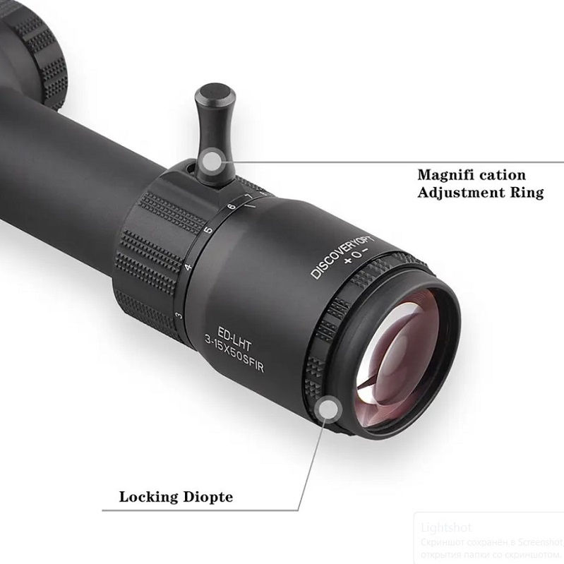 Будьте первым! Поставьте оценку, оставьте отзыв о товаре Прицел оптический Discovery ED-LHT 3-15x50 FFP SF із сіткою SFAI CT IR-MIL та підсвічуванням :