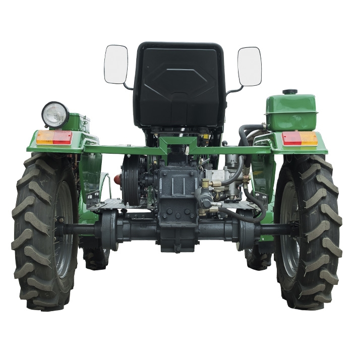 Самый простой, компактный, маневренный, недорогой, но в то же время – многофункциональный и надежный заднеприводный трактор мощностью 16 л. с. Разрешенный к эксплуатации на дорогах общего пользования в отличие от мотоблоков. Предназначен для выполнения широкого спектра сельскохозяйственных, транспортных и других видов работ в частных домохозяйствах, мелких и средних фермерских хозяйствах, коммунальных службах. Имеет достаточно места для водителя, рациональное расположение органов управления, удобное сиденье. Зеркала заднего вида большие, закрепленные на жестких поворотных кронштейнах. Оснащен экономичным дизельным одноцилиндровым двигателем с водяным охлаждением и электростартером. Тормоза барабанного типа. Трансмиссия комбинированная: клиноременная передача, двухдисковое сухое сцепление, шестеренчатая коробка передач тракторного типа, обеспечивающая 6 скоростей переднего хода и 2 скорости заднего хода. Передняя и задняя колеи регулируемые, полуоси заднего моста удлиненные. Передние и задние колеса с протектором "елочка", диски закреплены на шпильках. Съемное прицепное устройство и навесная система мотоблочного типа, но установлены гидронасос и гидроцилиндр двойного действия для подъемной навесной системы с гидравлическим управлением. Питание гидросистемы осуществляется с отдельного бака. Гидрораспределитель имеет 4 режима работы: подъем, опускание, фиксированный и плавающий. Гидроцилиндр может переставляться под переднюю навеску. Отбор мощности для переднего и заднего навесного оборудования осуществляется с ведущего или ведомого шкивов трансмиссии. Для этого на шкивах предусмотрены специальные свободные ручьи. Трактор агрегатируется с различным навесным оборудованием, в том числе с активными роторными почвофрезами шириной до 1120 мм, с плугами, сеялками, копалками, а также с транспортными прицепами и полуприцепами.