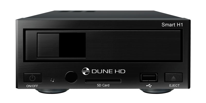 Медиаплеер Dune HD Smart H1 имеет компактные габариты, оснащён встроенным отсеком для установки и «горячей» замены жёсткого диска с интерфейсом SATA формата 3,5", имеет три высокоскоростных порта USB 2.0, один USB Slave, слот для карт памяти типа SD и коннектор eSATA для внешних накопителей. Видеотракт модели представлен одним портом HDMI версии 1.3, композитным и компонентным аналоговыми выходами. Подключение звука возможно как по HDMI, так и по «оптическому» интерфейсу типа Toslink или стереопаре.