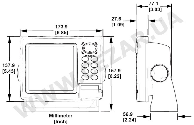 5-ти дюймовый TFT дисплей, 256 цветов, превосходно виден при любом освещении, разрешение 640x480 пикселей для более высокой детализации, 1500 ватт пиковой мощности, глубина локации до 244 м, охват до 60°, быстрое обновление экрана, встроенная память, подсветка клавиатуры и экрана, водонепроницаемый корпус.