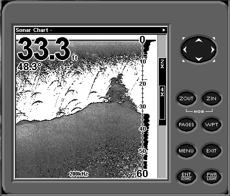 При включении этой функции можно выводить на экран увеличенное изображение интересующего слоя воды. Это позволяет, например, более детально рассмотреть донную поверхность, в складках которой может скрываться рыба.