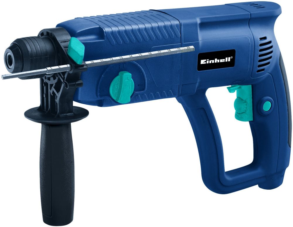 Аппарат Einhell Blue BT-RH 920 E предназначен для работы от электрической сети 230 В при частоте 50 Гц, а потребляемая им мощность не превышает 920 Вт. Инструмент с индексом BT-RH 920 E серии Blue очень удобен тем, что дает возможность сверления отверстий в бетоне диаметром до 26 мм при 0-5185 уд/мин и 0-980 об/мин, а сила удара перфоратора Айнхель BT-RH 920 E равна 2,5 Дж. Электрический перфоратор BT-RH 920 E от немецкого завода-производителя Einhell оснащен высокоэффективным ударным механизмом, мощным электрическим приводным двигателем, патроном SDS-Plus, блоком реверсивного движения, регулируемой дополнительной рукояткой и глубиномером.