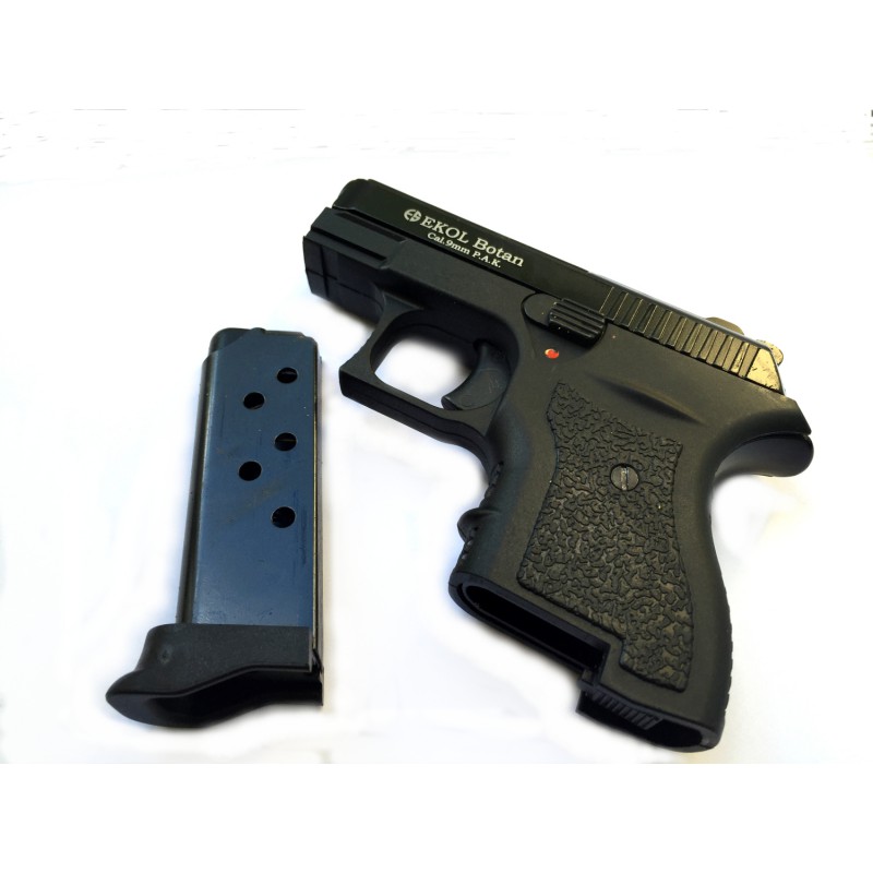 Стартовый пистолет EKOL BOTAN. Производится турецкой компанией EKOL VOLTRAN. Он пришел на смену предыдущей модели EKOL VOLGA. К основным техническим характеристикам можно отнести прочность корпуса, который выполнен из высокопрочного полимера - ЦАМ (цинк, алюминий, магний). Калибр пистолета 9 мм. Для стрельбы используется холостой патрон. Зарядность пистолета 6 патронов в магазине и один в пистолете , тоесть 6 + 1. Общая длинна 123 мм, а высота 98 мм. Ширина пистолета так же не вилика 26 мм. Вес состовляет 457 г. Шумовые пистолеты предназначаются для подачи звуковых сигналов в целях самозащиты (отпугнуть собак, привлечь звуком внимание окружающих в трудной для себя ситуации), а также при проведении спортивных соревнований и спортивно- массовых мероприятий. Пистолеты сигнальные не являются огнестрельным оружием и продаются без разрешения, а поэтому вы свободно можете заказать его в нашем интернет-магазине.