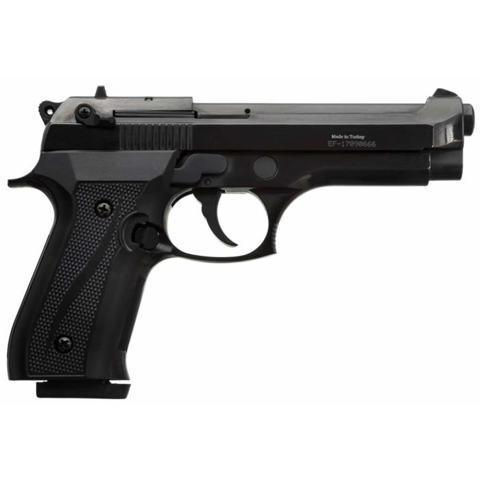 Ekol Firat Magnum (Black) – отличный выбор тех, кто решил купить стартовый пистолет для самозащиты или любви к оружию. Точная копия «настоящего» Beretta 92 – такой же тяжелый, выполненный из металла, внушительных размеров (вес - 1,15 кг, длина – 20,9 см). Единственное отличие – стреляет холостыми, ствол надежно защищен заглушкой из прочной стали. Подает громкий звуковой сигнал, а потому его можно классифицировать и как шумовой пистолет. Приобрести можно легально без специальных разрешений или сертификатов.