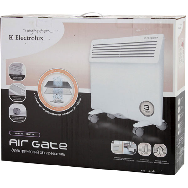 Сохранение экологии жилого и рабочего пространства — важнейшие задачи, решаемые компанией Electrolux. Как известно, обычные конвекторы создают в помещении круговорот воздуха, что способствует циркуляции пыли в пространстве. Конвекторы ECH/AG - 1000 MF не только лишены этого недостатка, но и способны уменьшить количество пыли в воздухе, что особенно актуально, если в семье маленькие дети, а также люди, страдающие аллергическими или астматическими заболеваниями. Низкая температура нагревательного элемента X-DUOS практически не влияет на изменение уровня влажности воздуха в помещении и не приводит к сжиганию кислорода, что является залогом хорошего самочувствия каждого члена семьи. Система фильтрации AIR GATE борется с большей частью вредных частиц, присутствующих в воздухе. Конвекторы серии AIR GATE стремятся исправить, сохранить и улучшить экологическую обстановку обогреваемых помещений.