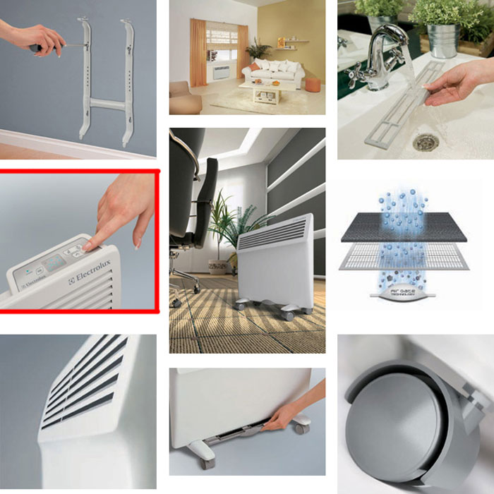 Дизайн новых конвекторов ECH/AG - 2000 EF создавала группа европейских дизайнеров-технологов и им это удалось на 100%. Внешний вид конвектора порадует любого потребителя и подойдёт под любой интерьер помещения. Модель Electrolux ECH/AG - 500 EF на сегодняшний день не имеет аналогов на рынке отопительной техники. Новая аэродинамическая форма конвектора и низкое расположение нагревательного элемента намного повысили эффективность конвектора. Таким образом увеличилась тяга и скорость распространения нагретого воздуха.