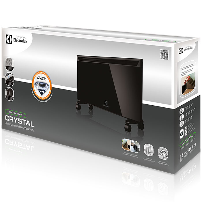 Электрический конвектор Crystal ECH/G – 1000 E – это результат последних разработок Electrolux в сфере высоких технологий и современного дизайна. Лицевые панели обогревателя выполнены из высококачественного монолитного термостойкого стекла черного цвета – экологически чистого и безопасного материала. Прибор безопасен и экологичен: он не сушит воздух и не нарушает естественную влажность в помещении.