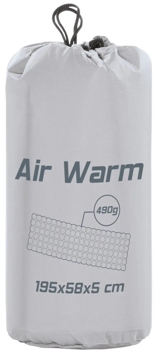 Ferrino Air Warm Mat Grey (78248OII) - трисезонний надувний килимок, що має вбудований клапан підкачування. Насос для надування йде в комплекті (його можна використовувати в якості чохла для зберігання). Цей міцний килимок невеликого об’єму, виготовлений із нейлону Ріпстоп, надлегкий (лише 490 г). Спеціальна конструкція з алюмінізованою плівкою з внутрішньої сторони покращує термостійкість килимка, що робить його придатним для використання протягом трьох сезонів. Численні роздільні камери, заповнені повітрям, повторюють контури вашого тіла, забезпечуючи максимально комфортний сон. Килимок надувний Ferrino Air Warm Mat Grey (78248OII) займає мінімум місця в рюкзаку в порівнянні з іншими видами туристичних килимків, що забезпечує значний рівень комфорту та більш високий рівень теплоізоляції.