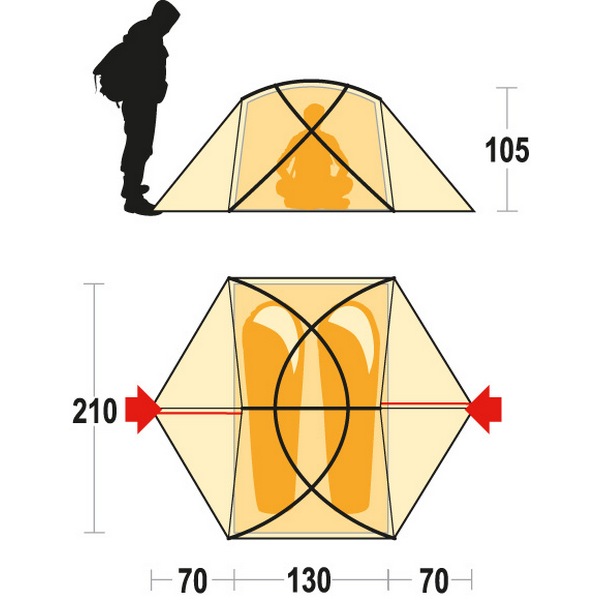 Внутренняя палатка (ДхШхВ), мм: 2100 х 1300 х 1050