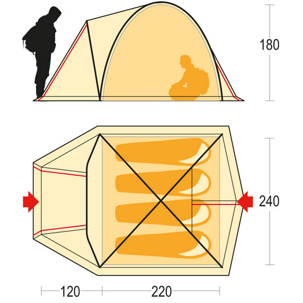 Внешняя палатка (ДхШхВ), мм: 3400 х 2400 х 1800