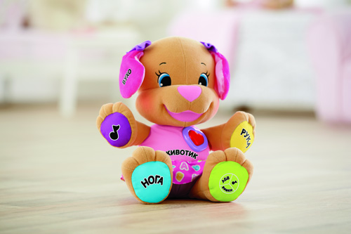 Мягкая игрушка Fisher-Price Сестричка Умного щенка серии "Улыбайся и учись", которая реагирует на прикосновение малыша, произносит забавные поговорки и поет веселые песни на украинском языке — например, милые песенки для девочек, обучающие песенки и много других замечательных песен. Игрушка имеет два интерактивные режимы для игры. Сердечко Сестрички щенка мигает в такт музыке!