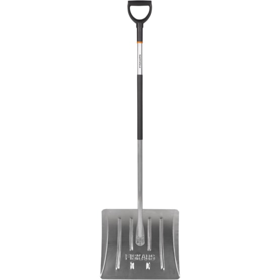 Особое внимание стоит обратить на длинный алюминиевый черенок, высота которого оптимально приспособлена для использования человеку любого роста. На черенке имеется специальная пластиковая вставка, которая не дает рукам примерзнуть к ручке даже в сильный мороз. Инструмент удобно лежит в руках и практически не скользит. Стоит также отметить, что D-образная ручка значительно снижает вероятность травмирования во время работы, а также исключает проскальзывание инструмента во время работы. С облегченной линейкой снегоуборочного инвентаря Fiskarsочистка территории от снега превратится в легкое и быстрое занятие.