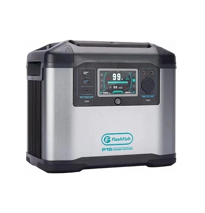 FlashFish P15 — портативная электростанция весом 11,5 кг, оборудованная ручкой для удобного переноса и встроенным хранилищем, где можно хранить переходники, кабели и другие небольшие предметы. Емкость FlashFish P15 составляет 1008 Втг или 278 100 мАч, а количество портов позволяет заряжать до 11 устройств одновременно, включая работающих от сети 220 В.