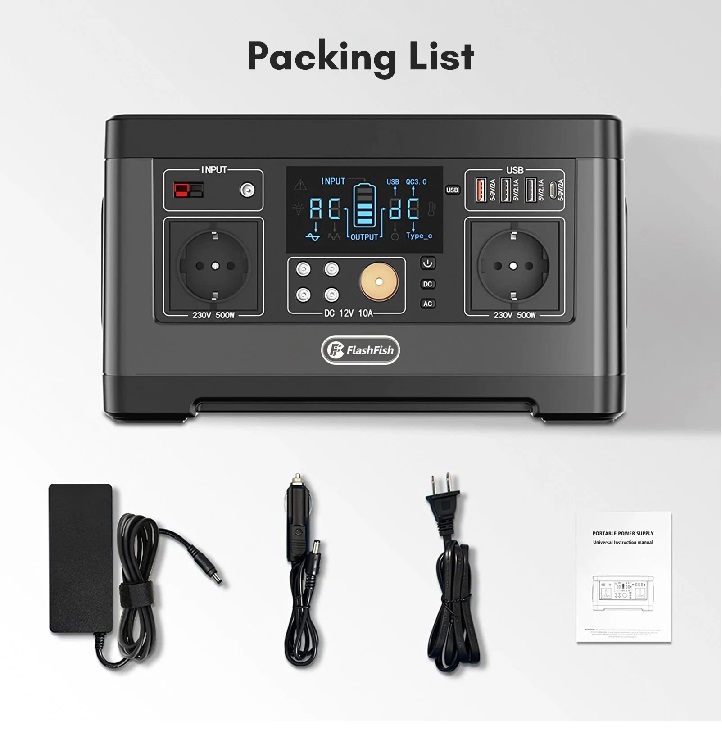 Электростанция Flashfish P63 оснащена выходами AC/DC/USB для питания смартфона, планшета, ноутбука, камеры, фонарей, дронов, вентиляторов, автомобильных устройств, CPAP-устройства, бытовой техники и многого другого в любое время. Заряжайте до 11 устройств одновременно! Источник питания FlashFish 520Wh оснащен литиевой батареей, которая может эффективно заряжаться от солнечной панели (не входит в комплект), адаптера переменного тока и автомобильного зарядного устройства (входят в комплект).