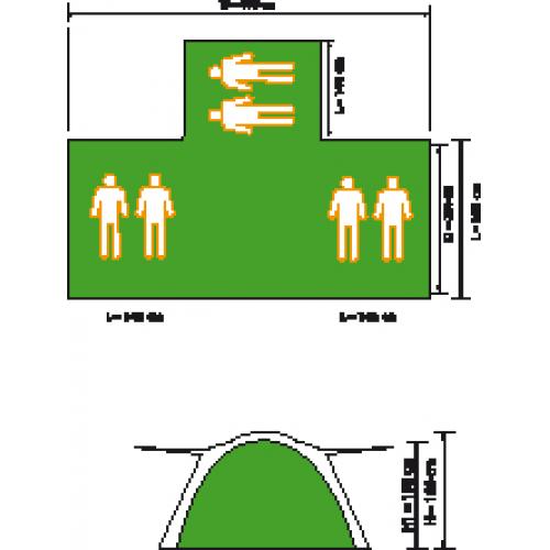 Внешняя палатка: Нейлон 190Тс полиуретановым покрытием и дополнительно проклеенными швами.