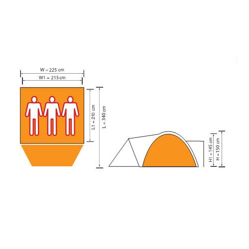 Внешняя палатка: BREATHABLE 200D OXFORD с черным покрытием и дополнительно проклеенными швами 3000мм