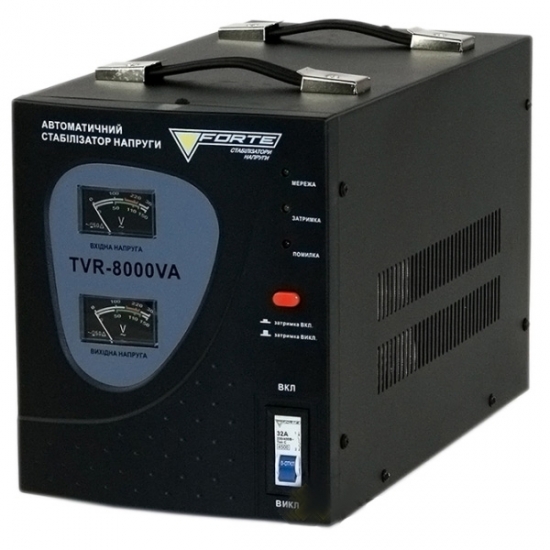Стабилизатор напряжения Forte TVR-8000VA - Ваш надежный помощник, который обеспечивает стабильное электропитание оборудования в условиях продолжительного по времени заниженного или завышенного напряжения электросети. Стабилизатор оснащен защитой от перегрева, короткого замыкания и скачков напряжения, а при срабатывании одной из защит очень быстро и самостоятельно возобновит работу. Данное свойство делает стабилизатор Forte TVR-8000VA очень практичным, а работу с ним очень комфортной. Сам стабилизатор обладает относительно небольшим весом и небольшими габаритами, что не составит проблем с выбором места для его установки или хранения.