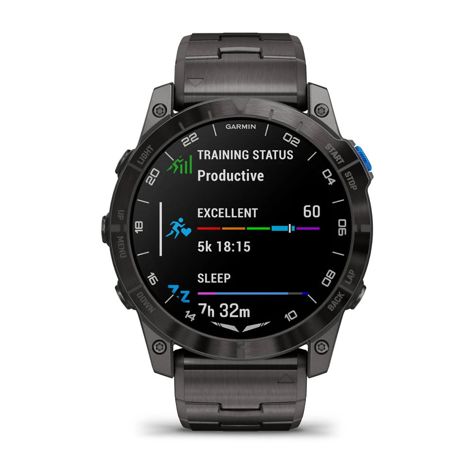 Будьте готові до зльоту вдень чи вночі. Цей розумний годинник преміум-класу має вбудований ліхтарик, яскравий дисплей AMOLED і передові інструменти для польотів.