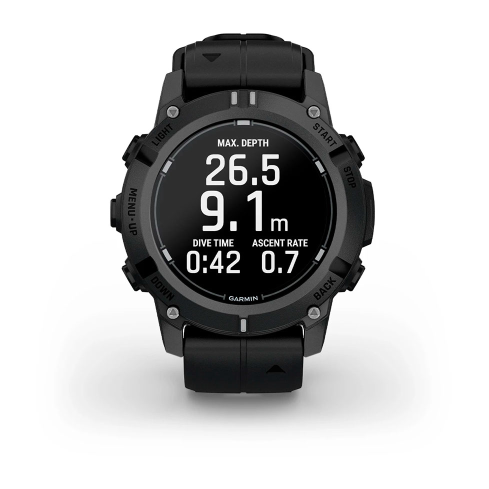 1,2-дюймовий дисплей AMOLED забезпечує легке зчитування інформації на великій глибині. Годинник має високоміцну сапфірову лінзу та герметичні кнопки, а також рейтинг занурення 10 ATM.