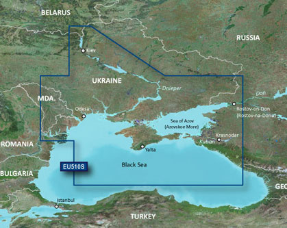 Карта реки Днепр - Dnieper River & Azov Sea (HXEU510S) создана на основе данных «Держгідрографія». Формат данных - BlueChart g2.