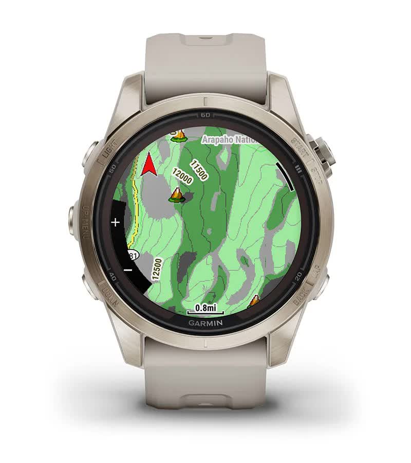 Додаткова підписка на карти Outdoor Maps+ пропонує доступ до преміальних карт (тільки покриття США) та супутникових знімків (всесвітнє покриття), які завантажуються безпосередньо на ваш годинник7.