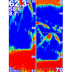 Эхолот 400C может использоваться с различными типами двулучевых и двухчастотных излучателей, поэтому Вы можете применять этот прибор для рыбалки и в пресноводных озерах, и в море. Вариант с двулучевым излучателем обеспечивает выходную мощность 400 Вт (RMS), широкий угол обзора и максимальную глубину 900 футов. При использовании двухчастотного излучателя с мощностью 500 Вт (RMS) максимальная глубина достигает 1,500 футов.