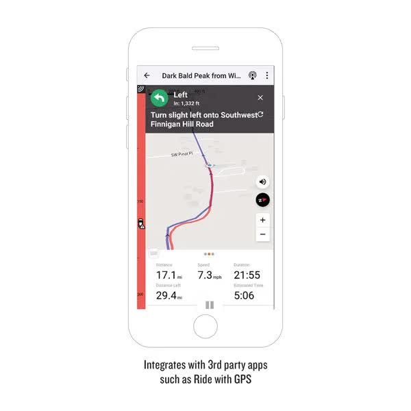 При використанні разом з сумісним смартфоном радар Varia інтегрується з вашими улюбленими додатками, такими як Ride with GPS для накладення карт на інформаційні зображення радара.
