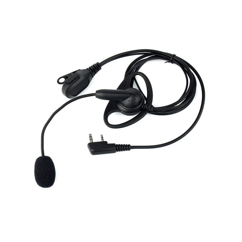 Гарнитура однопроводная, D-образная, с мягким кольцом, удобная для длительного ношения на ухе с микрофоном на гибкой штанге. Большой качественный динамик, хорошая громкость. Удобная кнопка РТТ с встроенным микрофоном с креплением на лацкан.