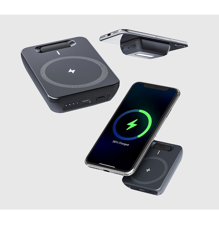 Наявність знімного павербанку з бездротовою зарядкою - 6400 мА/год / 24 Вт/год. Павербанк вбудований у кришку зарядної станції.