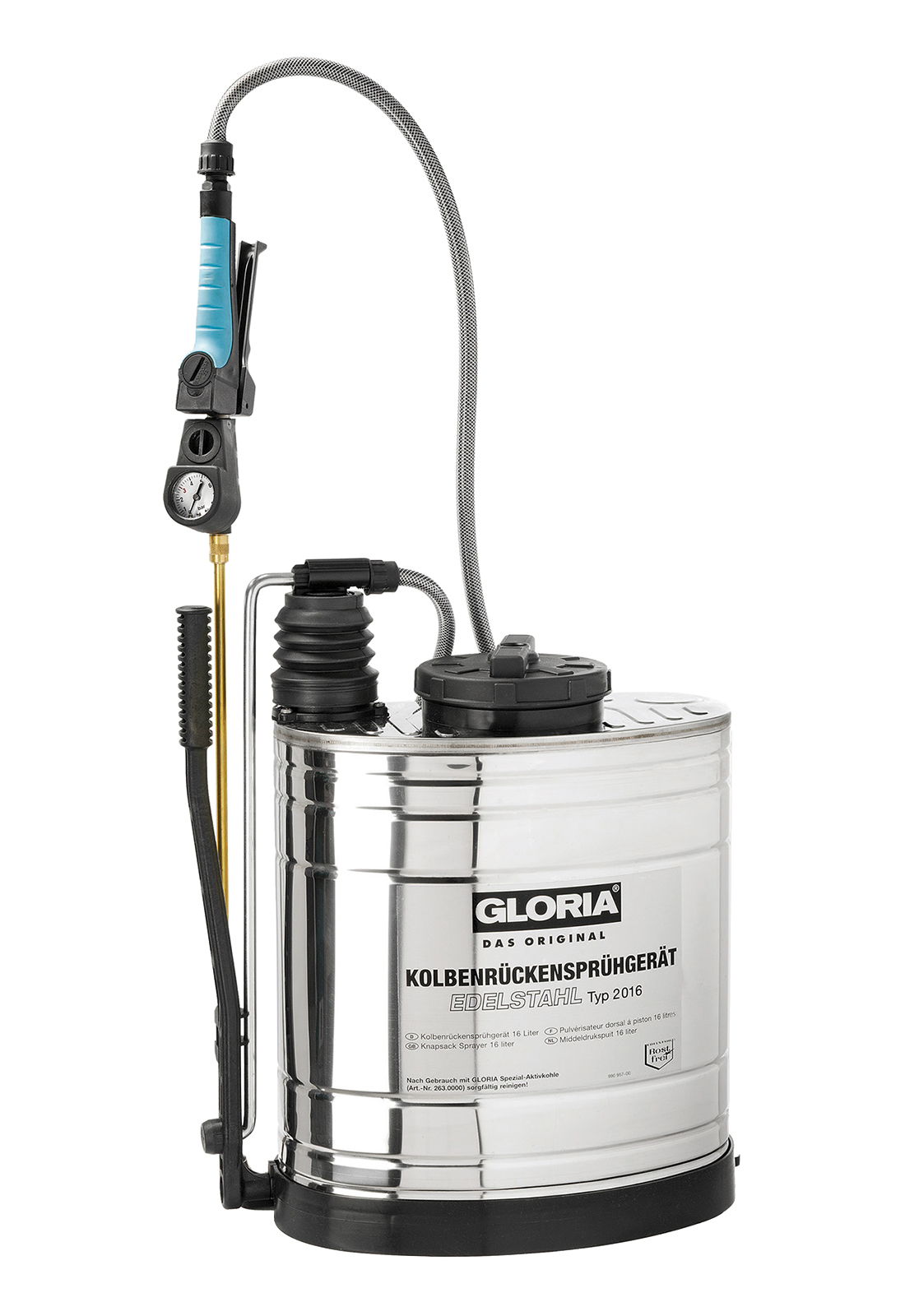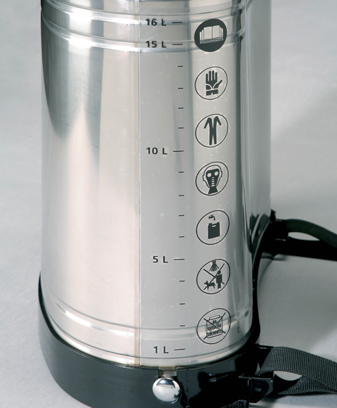 Ранцевый опрыскиватель 2016 оборудован резервуаром из нержавеющей высококачественной стали. 16 л распыляемого средства можно залить, при этом входящий фильтр предотвращает попадание загрязнений из жидкости в инструмент. Стабильным поворотным рычагом активируйте мощный пластиковый насос и подавайте средство распыления через удлинительную трубу длиной 0,5 м. Интегрированный в быстродействующий клапан-отсекатель манометр показывает давление распрыскивания, существующее в сопле. Мягкий ремень с системой быстрого натяжения и интегрированная опора для спины обеспечивают необходимый комфорт при ношении. Модель подходит для внесения биологических средств защиты растений.