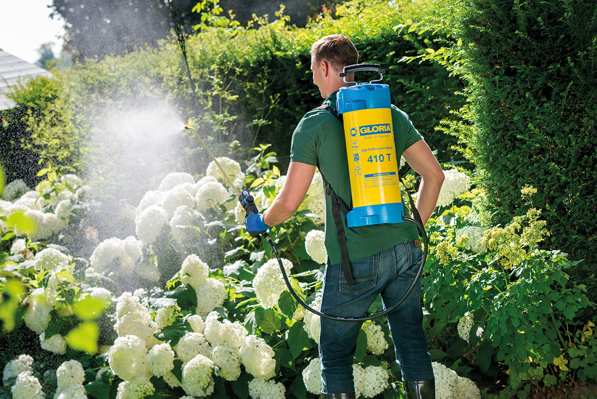 У высокопроизводительного распылителя 410 T напорный резервуар из стали с высококачественным внутренним пластиковым покрытием, который может вместить до 10 л распыляемого средства и подходит для рабочего давления макс. 6 бар.