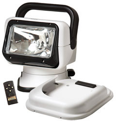 Лампа на 400,000-500,000 кандел, которая дает видимый свет на дистанцию до 2 километров! Мощность светового пучка достигает 10 люкс на дистанции 175 метров. Варианты управления :проводной джойстик, панель управления для монтажа в торпедо, радиопульт RadioRay, панель плюс радиопульт. Угол поворота: 370 градусов по горизонтали и 120 градусов по вертикали. Корпус жаропрочный, всепогодный. Лампа Philips H9 bulb with 12 Volts, 65 Watts, 400,000 свечей. 270 часов постоянного света .Отражатель - параболический (компьютерный дизайн). Радио управление до 30 метров.