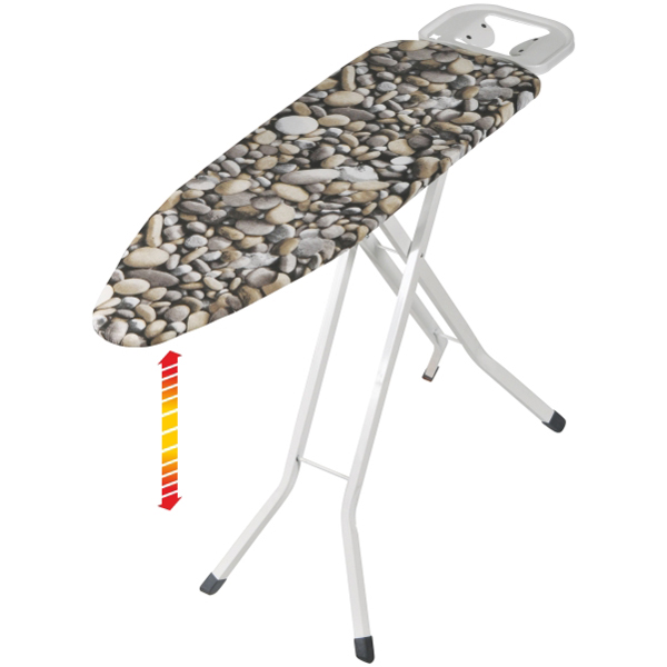 Рабочая часть доски Granit Fulya изготовленная из штампованного и растянутого цельного листа металла, что позволяет пропускать пар от утюга насквозь, не позволяя влаге скапливаться под покрытием. Такая поверхность не деформируется со временем.