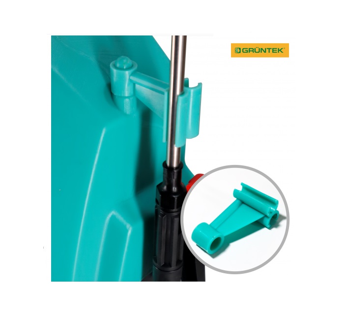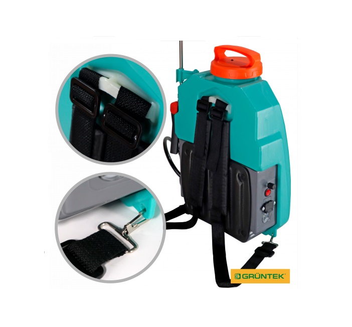 • Модель оснащена широкими ременями на плечі (ранцевий тип), завдяки яким обприскувач можна легко переміщати, а його маса буде правильно розподілятися на плечі і спину оператора.