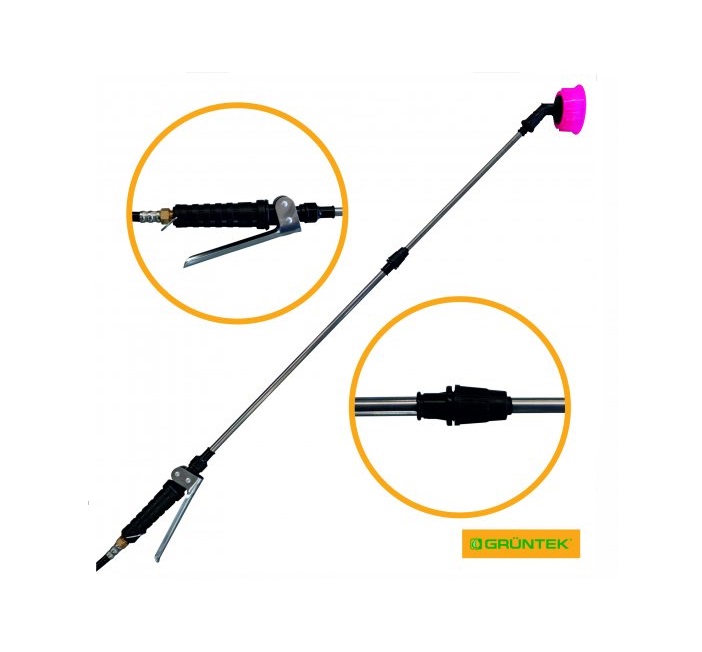 Комплектується довгою металевою штангою з подвійною форсункою для розпилення робочої рідини.