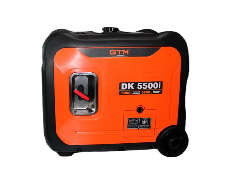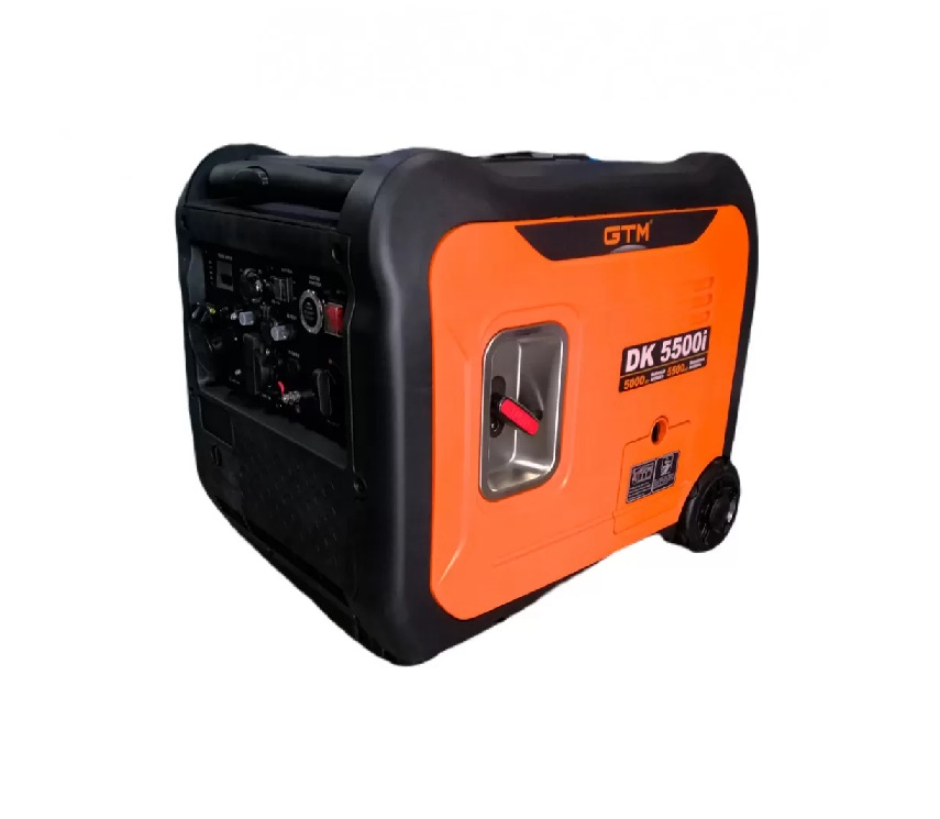 Инверторный бензиновый генератор GTM DK5500i – оснащен надежным, устойчивым к работе в экстремальных условиях 4-х тактным двигателем марки DK180F с максимальной мощностью на выходе до 5.5 кВт. Идеальный вариант, чтобы сделать ваш отдых, поход или рыбалку еще ярче и комфортнее. Во время работы полного бака топлива объемом 13.5 л хватит до 8.5 часов при 50% нагрузке. Инверторная технология обеспечивает надежное питание для чувствительных электрических приборов и компьютеров. Защита при низком уровне смазки. Удобная защищенная панель.