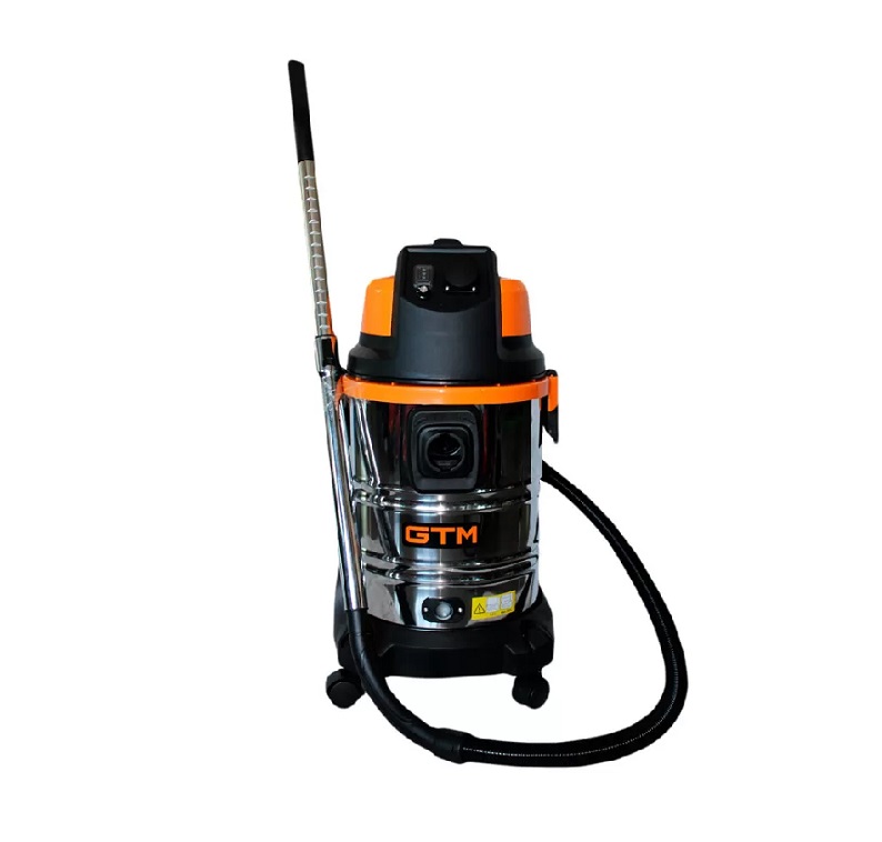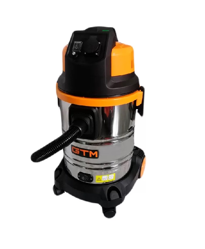 GTM JN 508 - промышленный пылесос для уборки сухого и влажного мусора, а также сбора воды. Сертифицирован для работы с пылью класса L. Работает от бытовой электросети с напряжением 220 В. Его контейнер изготовлен из нержавеющей стали и имеет емкость 30 литров чего достаточно для поглощения грубого или мелкого мусора. Конструкция пылесоса позволяет подключать к нему электроинструмент для сбора мусора прямо во время работы. Максимальная мощность инструмента может составлять 2000 Вт. Пылесос имеет возможность работы в 3 режимах: с мешком, без мешка и с водяным фильтром. Пылесос комплектуется качественным HEPA-фильтром. Имеется встроенная система полуавтоматической очистки фильтра.