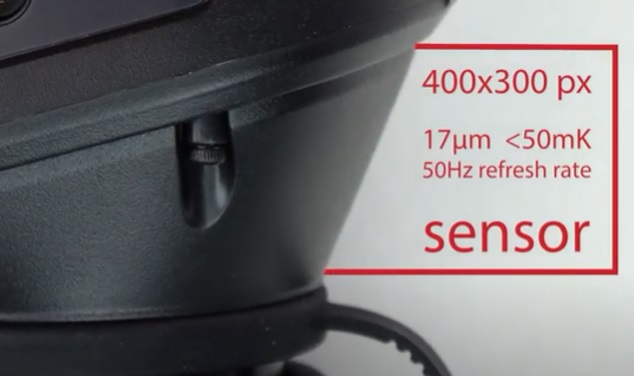 Тепловизионный модуль построен на базе матриц 300x400 pix из оксида ванадия (VOx) по технологии 17 мкм. Микроболометры этого типа, в отличие от аналогов на аморфном кремнии (a-Si) имеют значительно меньший температурный коэффициент сопротивления, за счет сниженного количества шумов получается более устойчивое изображение. Спектральный диапазон чувствительности от 8 до 14μm, что полностью соответствует требованиям для обнаружения излучения в длинноволновом спектре LWIR (Long-wavelength infrared). В этой области земная атмосфера полностью прозрачна. Порог температурной чувствительности NETD <50 мК обеспечивает высокую информативность и общую детализацию. Частот смены кадров 50 Гц оптимальна для отслеживания динамичных сцен с быстро передвигающимися целями.