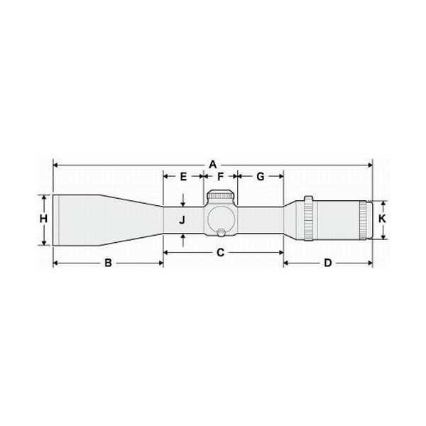 Детальные размеры прицела, мм: А=412, B=180, C=134, D=98, E=44, F=38, G=52, H=64, J=30, K=44