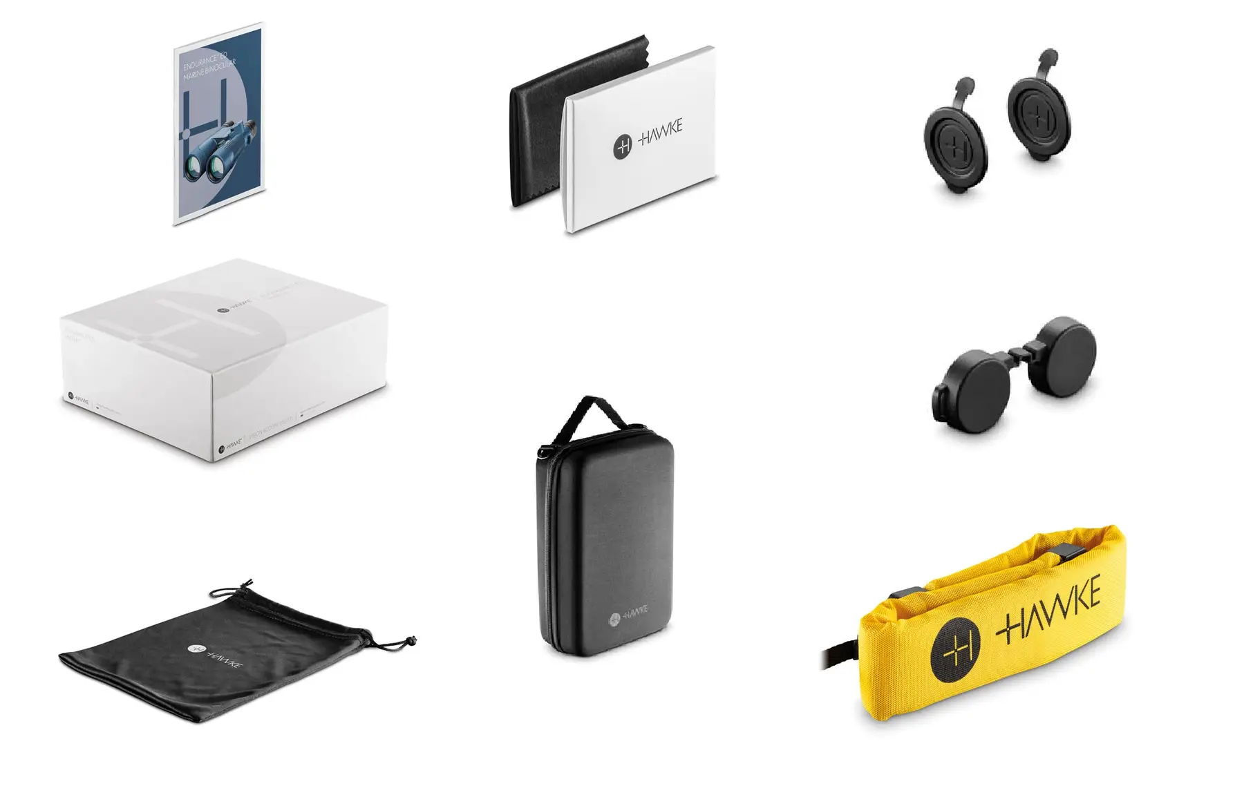 Комплект поставки Бінокль Захисні кришки окулярів та об'єктива Широкий нашийний ремінь з неопрену Напівжорсткий кейс з ременем для транспортування Серветка для протирання оптики
