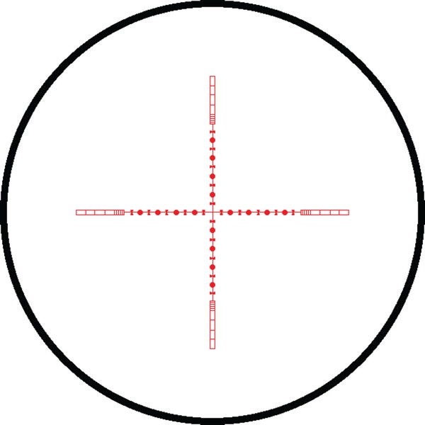 10х 1/2 Mil Dot IR - удобная универсальная сетка для максимально точного прицеливания на различных расстояниях. Главное отличие от обычной прицельной марки Mil Dot состоит в том, что тут имеются дополнительные пересечения, отмечающие пол мила. Все компоненты этой сетки имеют строго регламентированные размеры, расстояния между всеми элементами также регламентированы. Благодаря этому не проблема определить расстояние до цели либо размеры цели, приняв при этом правильную поправку на ветер и определить траекторию падения пули. Данный 1/2 Mil Dot верен при 10-кратном увеличении. Для других увеличений линейные и угловые размеры определяются методом интерполяции, либо по специальным таблицам. Персональную адаптацию сетки под конкретное оружие и тип снаряда позволит совершить бесплатный баллистический калькулятор X-ACT. Значительным преимуществом является то, что сетка выгравирована на стеклянной пластине. Это обеспечивает практически 100% защиту сетки от разрушительного влияния разновекторной отдачи пружинно-поршневой пневматики. Кроме того все элементы сетки достаточно тонкие и не перекрывают цель.
