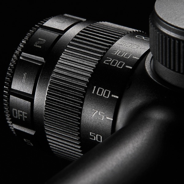 Прицел оснащен удобной боковой системой отстройки параллакса SF (Side Focus) на расстоянии от 13 ярдов (12 метров) до бесконечности. Для быстрого наведения резкости на цель предусмотрена система фокусировки Fast Focus на окуляре.