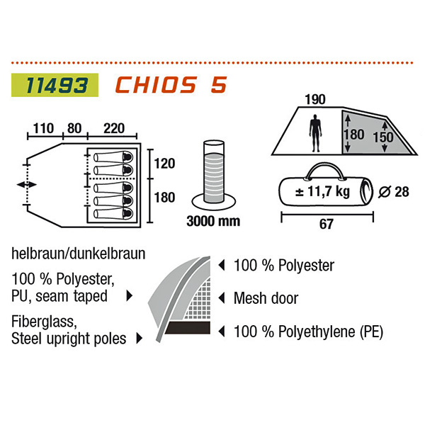 Произваодитель: | High Peak | Тип: | Кемпинг | Кол-во мест: | 5 | Противомоскитная сетка: | да | Вентиляция: | да | Размер в сложенном виде: | ∅ 67x длина 28 см | Размер в установленом виде : | 410x300x190 см | Вес: | 10.7 кг | Высота: | 1.9 см | Внешняя палатка: | 100% Polyester, PU покрытие 3000 мм в.ст. | Внутреняя палатка: | 100% Polyester, дышащий (Breathable Polyester) | Дно: | 100% Polyethylene (PE), герметичные, проклеенные швы с усиленной прочностью на разрыв. | Каркас: | гибкие дуги из стекловолокна (fiberglass) / стальные опорные стойки | Гарантия: | 12 мес |