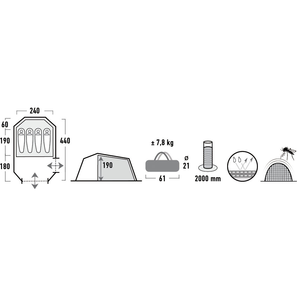 Габариты внешней палатки (Д х Ш х В): 440 x 240 x 200 см