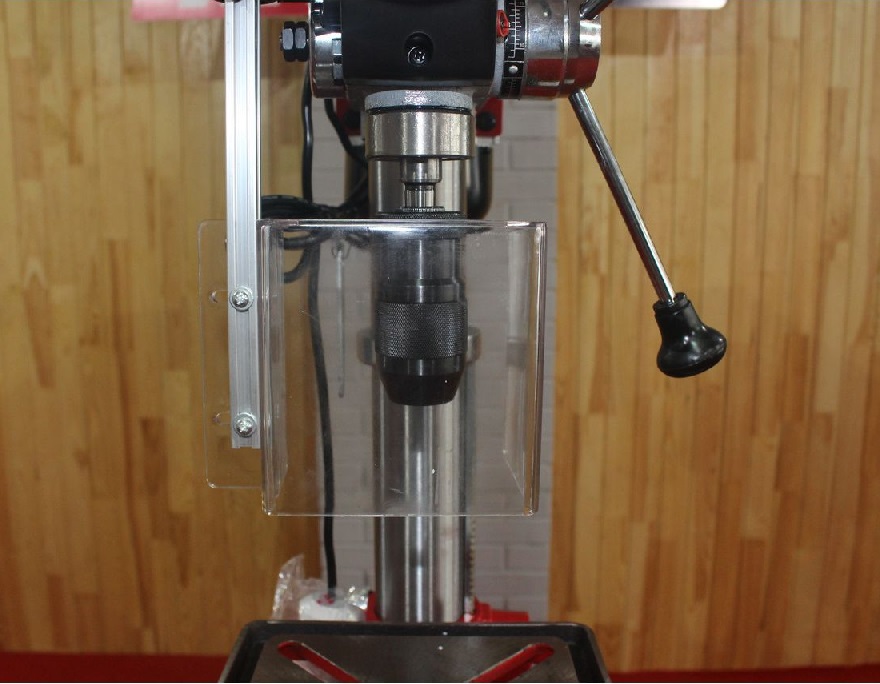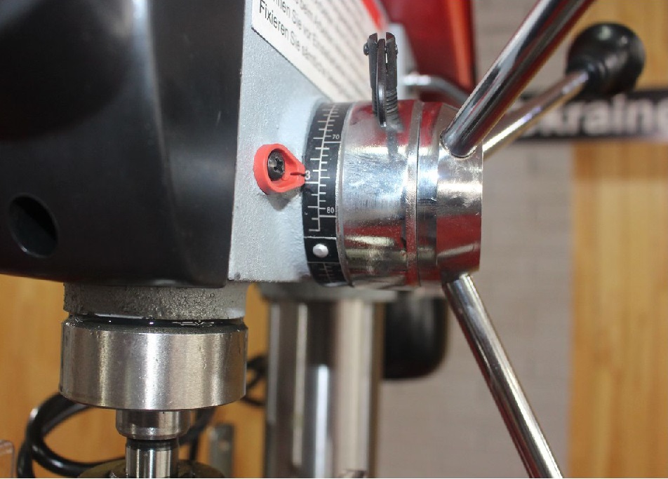 Конструкция относительно проста, но выполнена добротно и содержит все необходимое для точной и уверенной работы. Двигатель рассчитан на режим S1, что означает отсутствие существенного нагрева при номинальной мощности даже в течение длительных нагрузочных циклов. Редуктор имеет два ступенчатых пятиручейковых шкива для переустановки ремня, что позволяет выбрать оптимальную скорость и обеспечить необходимый вращающий момент. Пиноль шпинделя оборудована резьбовым упором-ограничителем, это простой в настройке и точный механизм, позволяющий производить установки с помощью штангенциркуля, или просто отсчитывая обороты гайки.