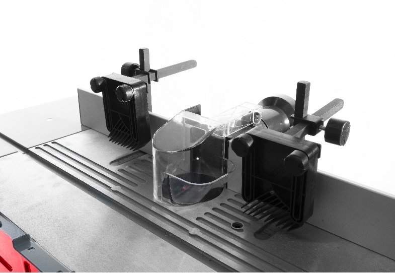 Комплект поставки: цанги для ø 6, ø 8 и 12 мм, удлинение стола в 2 раза (с обеих сторон), угловой упор, фрезерный упор/ограждение из алюминия, деревянные направляющие.