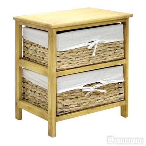 Каркас комода изготовлен из дерева, а ящики — из водяного гиацинта. Эйхорния прекрасная или водяной гиацинт растет в водоемах, имеет корни метровой глубины. Из высушенных корней делают косы шириной 8-16 мм и ими оплетают каркас корзины. Плетение получается толстым и мягким. Изделия из водяного гиацинта лучше использовать в помещении, они подвержены действию влаги.